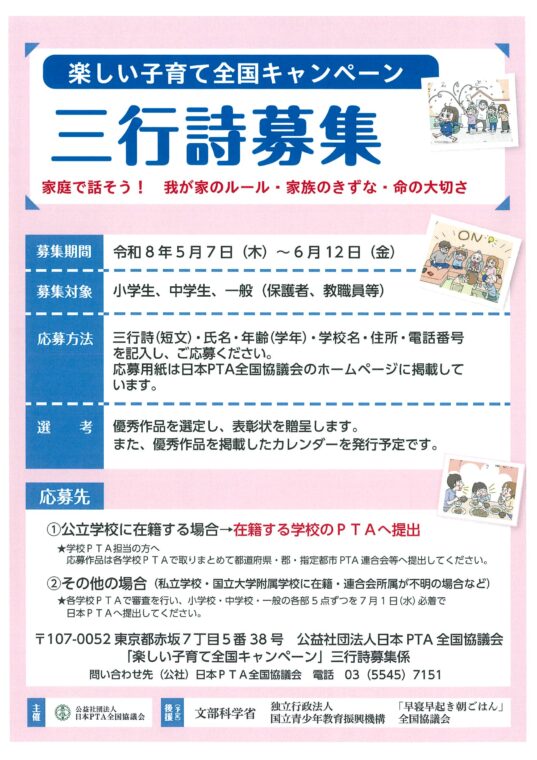 令和8年度 「楽しい子育て全国キャンペーン」三行詩募集